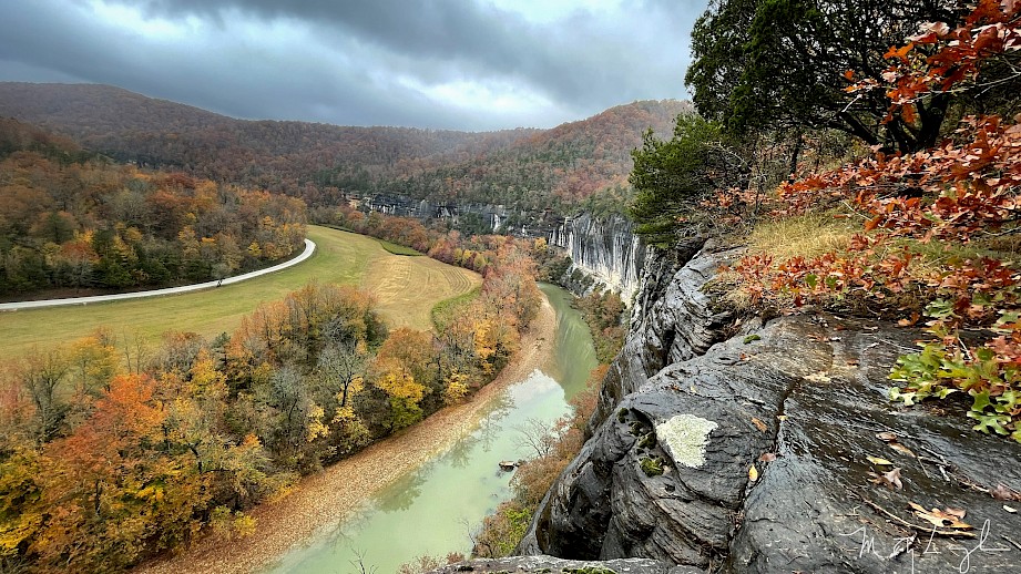 Roark Bluff is among the most iconic blufflines on the entire length of the Buffalo River, and it's visible from our property! At 3/4 mile long and more than 200 feet tall, this sheer slab of streaked sandstone towers over the river at Steel Creek Campground, which is managed by the National Park Service. Drive to the tent camping area and park near Site #24. A marked trail leads to the river and the upstream end of the bluff. Walk the gravel bar and take in the sights and sounds or perhaps take a swim in the Rushing Hole at the base of the bluff.