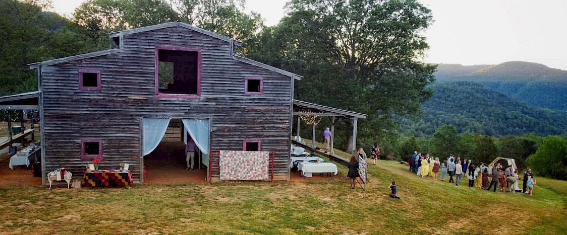 Built from timber harvested right here on our farm, this 3,000-square-foot barn is perched on a grassy hillside overlooking theĀ iconic Roark Bluff andĀ surrounding Ponca Wilderness. The Barn features electricity, a single-occupancy flush restroom, a level area for a dance floor, covered bays, and lots of surrounding outdoor space for tents, chairs, tables, and any other party supplies you may bring.